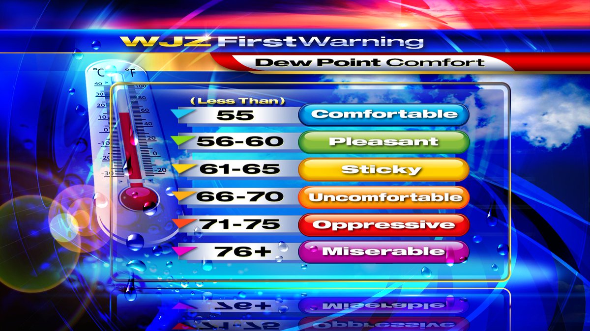Marty Bass Wjz On Twitter Mdwx The Second Of Two Here Is The Dew Point Comfort Scale The Current Dp Is 75 The Air Is Very Very Close This Morning Https T Co 2ildp5hij1