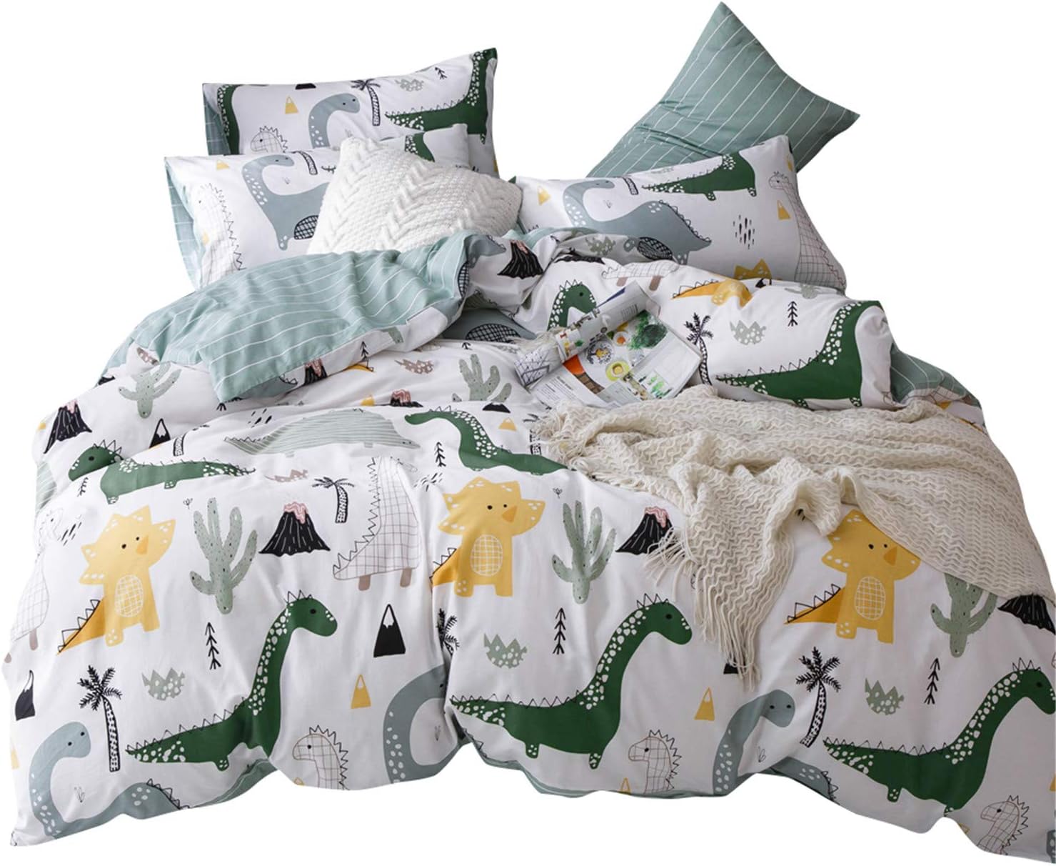 Amazon Com White Dinosaur Kids Bedding Comforter Cover Queen Boys 100 Cotton Teens Bedding Sets Full With 2 Pillow Shams Green Stripe Bedding Duvet Cover Queen Super Soft Animal Quilt Cover Queen No