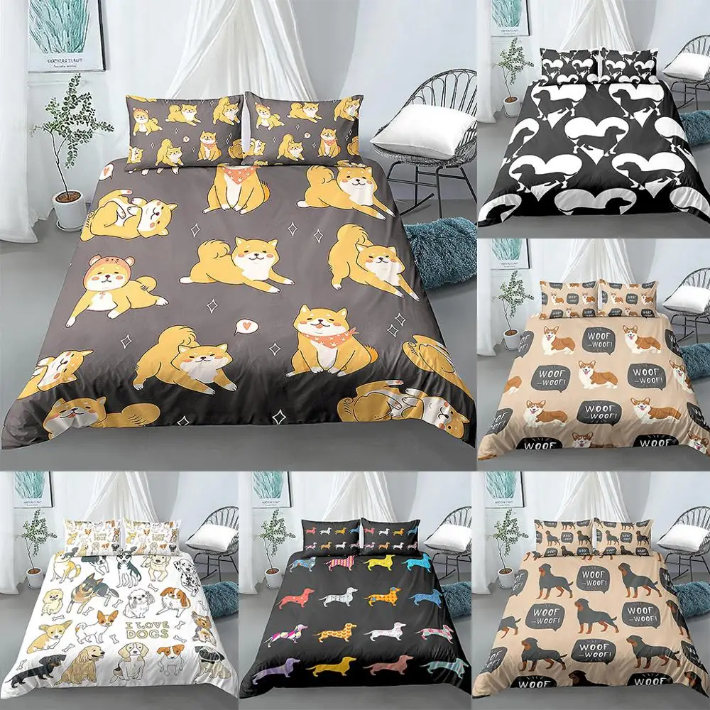 Best Offer 9cdba Cartoon Cute Corgi Dachshund Sausage Dog Comforter Bedding Set Duvet Cover Set Pet Printed Bed Linen Euro King Queen Size Cicig Co