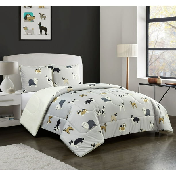 Mainstays Dog Cozy Flannel Reverse To Super Soft Sherpa Comforter Set King Walmart Com Walmart Com