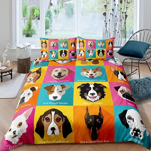 Amazon Com Erosebridal Cartoon Dog Comforter Cover For Child Animal Duvet Cover Set Lovely Pet Dog Pattern Quilt Cover Decorations 3 Pieces Bedding Set 1 Duvet Cover 2 Pillow Shams Lightweight Soft Queen Home Kitchen