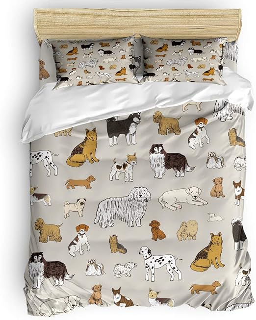 Amazon Com Ultra Soft 4 Pcs Bedding Duvet Cover Set Twin Size Include Duvet Cover Flat Sheet Pillow Shams Doggy Illustration Cartoon Puppy Dog Print Comforter Cover For Children Adults Teens Home Kitchen