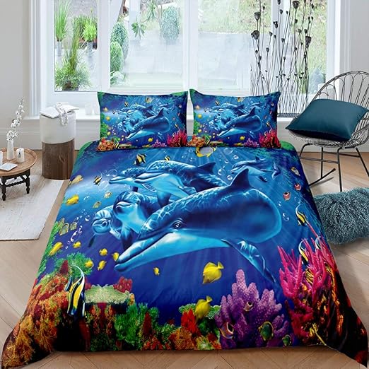 Amazon Com Twin Size Dolphin Bedding Set Underwater World Duvet Cover Colorful Fish Quilt Cover Seaweed Reef Comforter Cover Sealife Theme Microfiber Modern Bedspread For Kids Girls Boys Adult Room Decor Home Kitchen