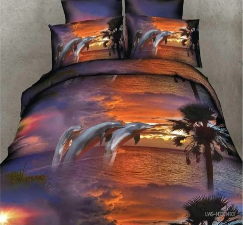 3d Sunset Bedding Sets Dolphin Sheet Set Duvet Cover Bed In A Bag Sheets Linen Spread Bedspread Doona Queen Size Full Double Bed In A Bag Bed In Bagcover Bed Aliexpress