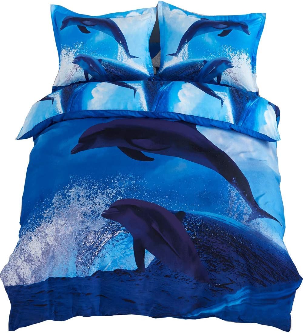 Amazon Com Encoft Cozyvie Dolphins Jumping Out Of Blue Water Print Polyester 3d Bedding Set With Duvet Cover Flat Sheet And Pillowcases Twin Full Queen Size Blue No Comforter Extra Long Twin Kitchen Dining