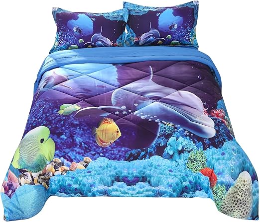 Amazon Com Qucover Twin Size Comfoter Set Blue Dolphin 1 Comforter 2 Pillow Cases For Teens Boys And Girls Home Kitchen
