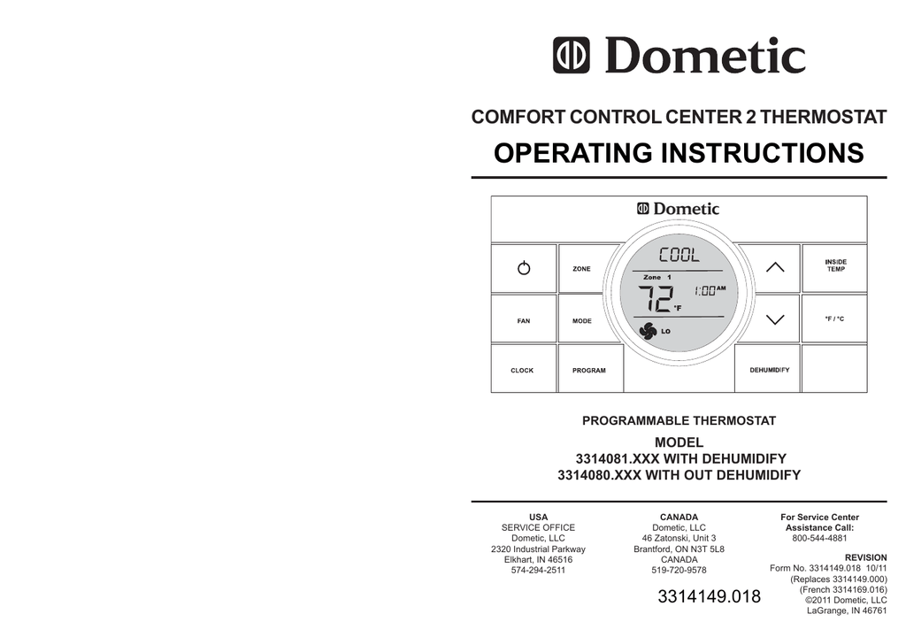 Dometic Comfort Control Center 2 Thermostat 3314080 000 3314080 013 095 Programmable Thermostat Operating Manual Manualzz