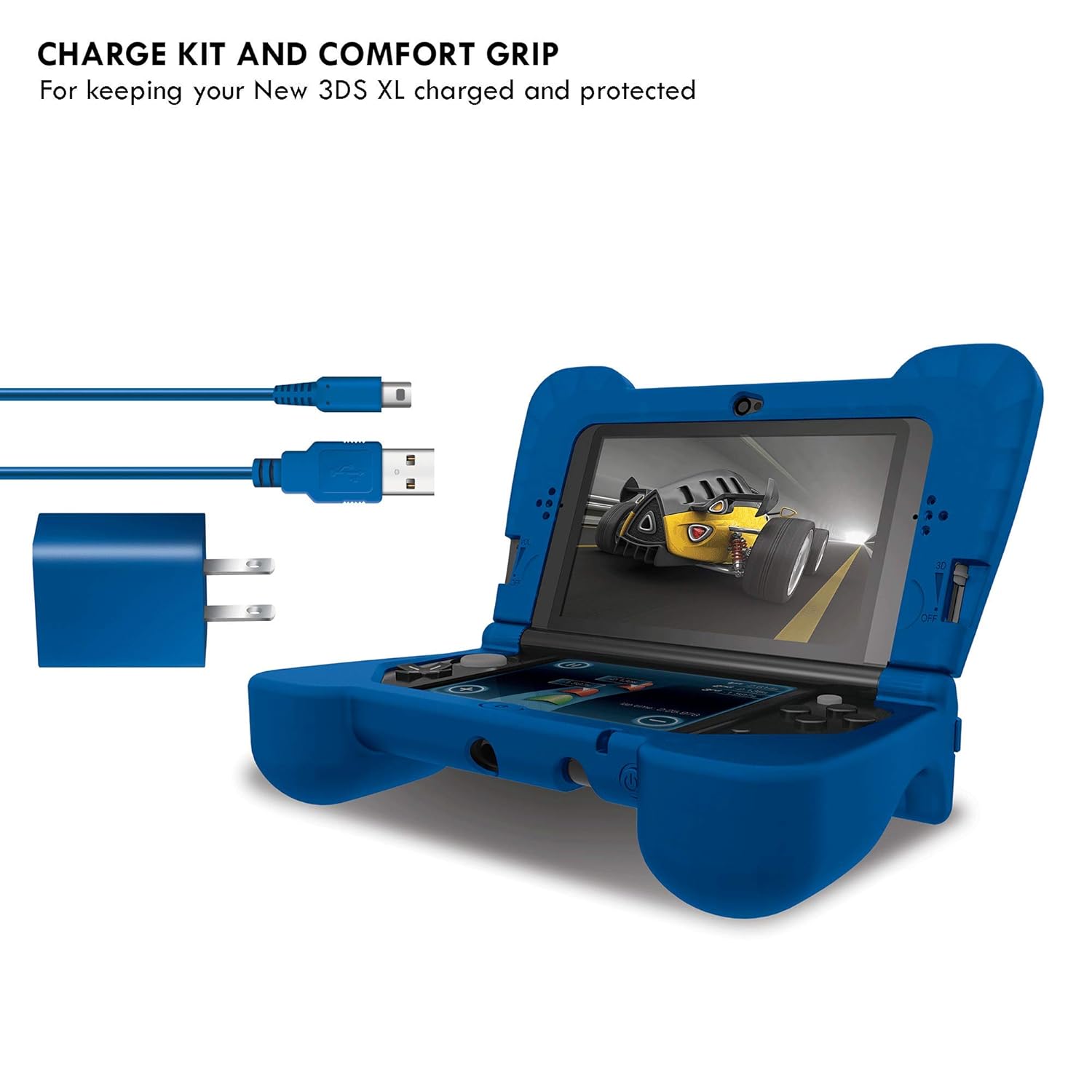 Amazon Com Dreamgear Dg3dsxl 2274 Power Play Kit Accessories Compatible With Nintendo New 3ds Xl 3 In 1 Bundle Soft Comfort Grip Case Charging Cable Ac Adapter Blue Electronics