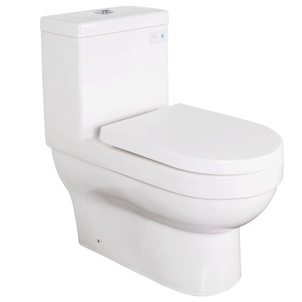 Woodbridge Pure White Dual Flush Elongated One Piece Toilet With Soft Closing Seat Comfort Height Water Sense High Efficiency Rectangle Button T 0001 Amazon Com
