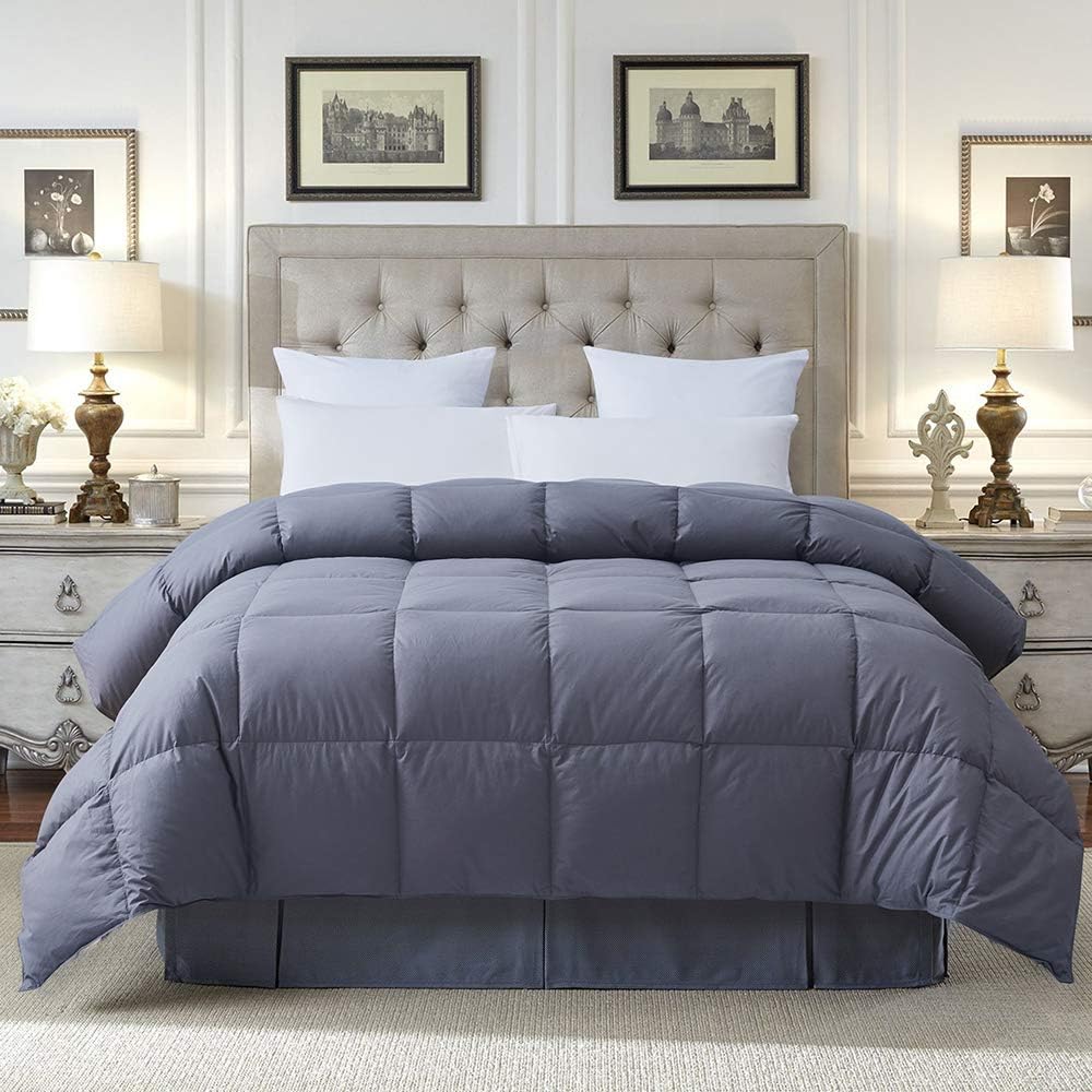 Amazon Com Cosybay 100 Cotton Quilted Down Comforter Grey Goose Duck Down And Feather Filling All Season Duvet Insert Or Stand Alone King Size 106 90 Inch Home Kitchen