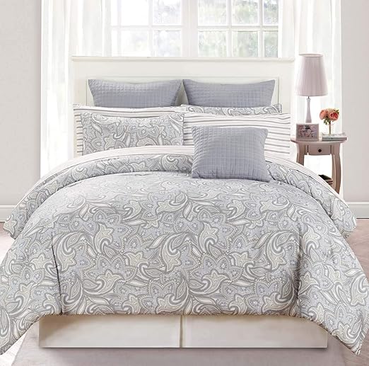 Amazon Com Duck River Desiree Bordered Comforter Set King Silver Home Kitchen