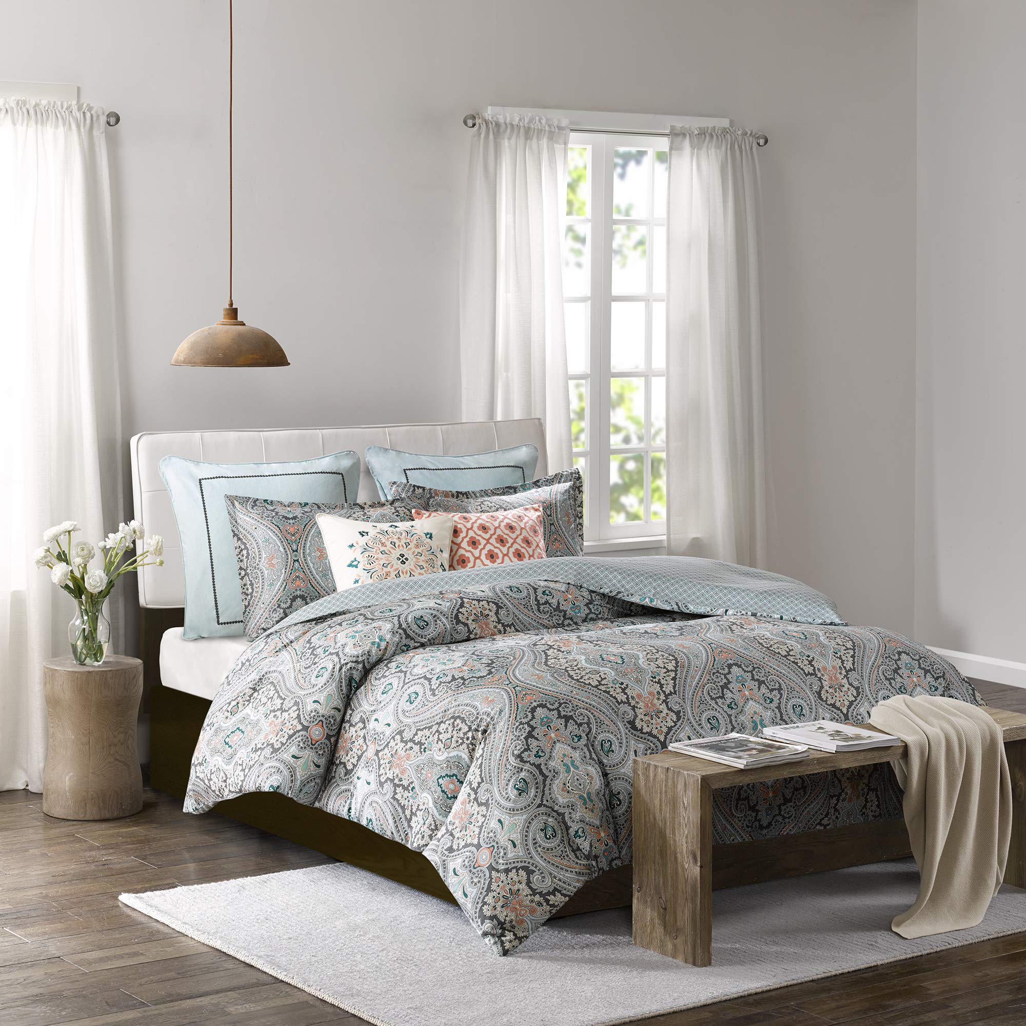 Amazon Com Echo Design Sterling Duvet Cover Twin Size Teal Green Damask Duvet Cover Set 2 Piece Cotton Light Weight Bed Comforter Covers Home Kitchen