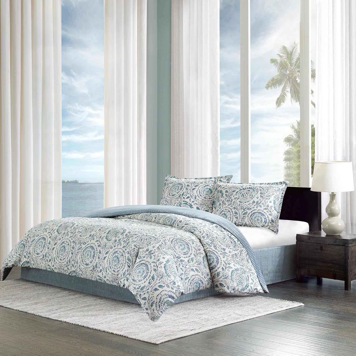 Amazon Com Echo Design Bukhara 3 Piece Cotton Comforter Set Full Queen 92 X96 Blue Home Kitchen