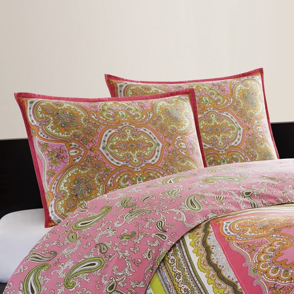 Shop Echo Design Gramercy Pink Green Paisley Print Cotton 3 Piece Comforter Set Multi Color Overstock 8947576
