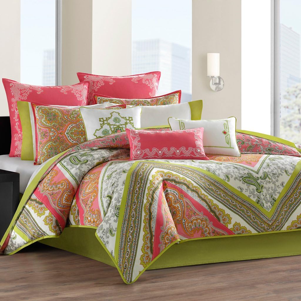 Echo Gramercy Pink Green Paisley Print Cotton 3 Piece Comforter Set Paisley Bedding Comforter Sets Paisley Comforter