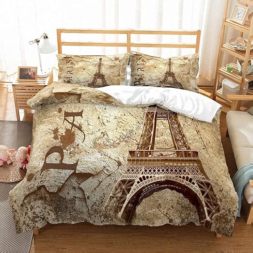Amazon Com Moumouhome Eiffel Tower Bedding Set Full Queen Size Retro Champagne Gold Bronze Eiffel Tower Paris Duvet Cover Set For Adults 3 Pieces 1 Duvet Cover 2 Pillowcases Home Kitchen