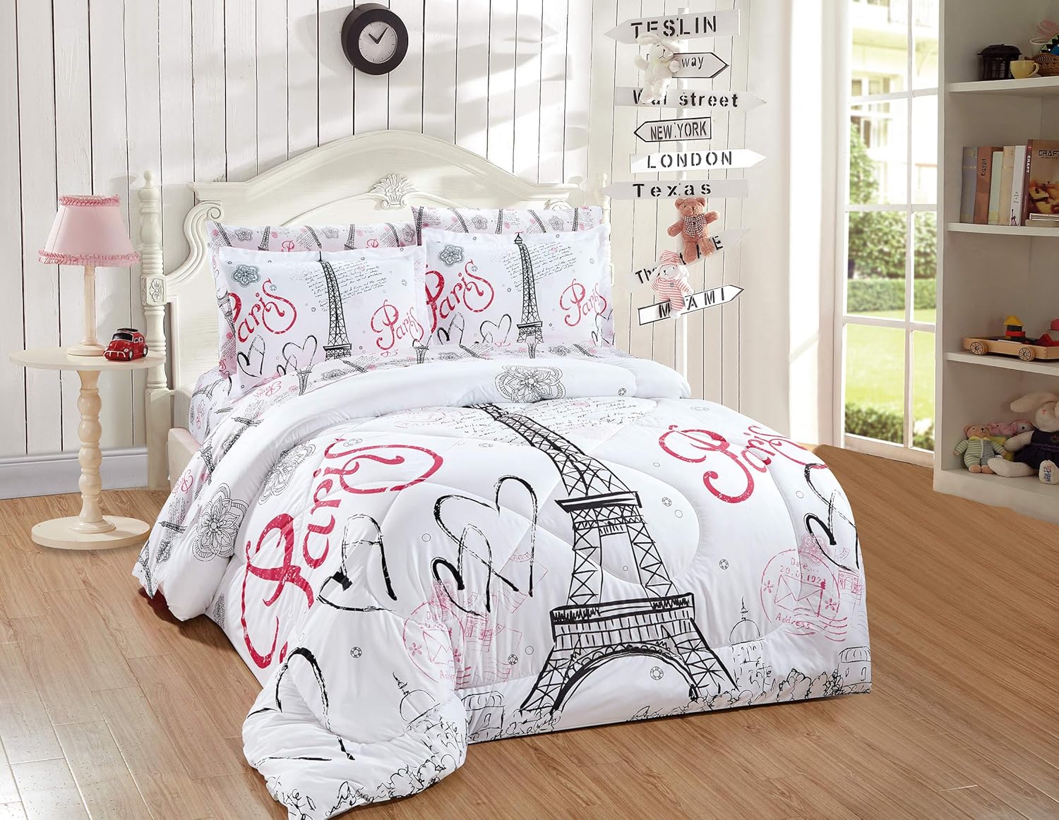 Buy Kids Zone Home Linen 7pc Queen Comforter Set Paris Eiffel Tower Hearts Flowers For Girls Teens White Pink Black Online At Low Prices In India Amazon In