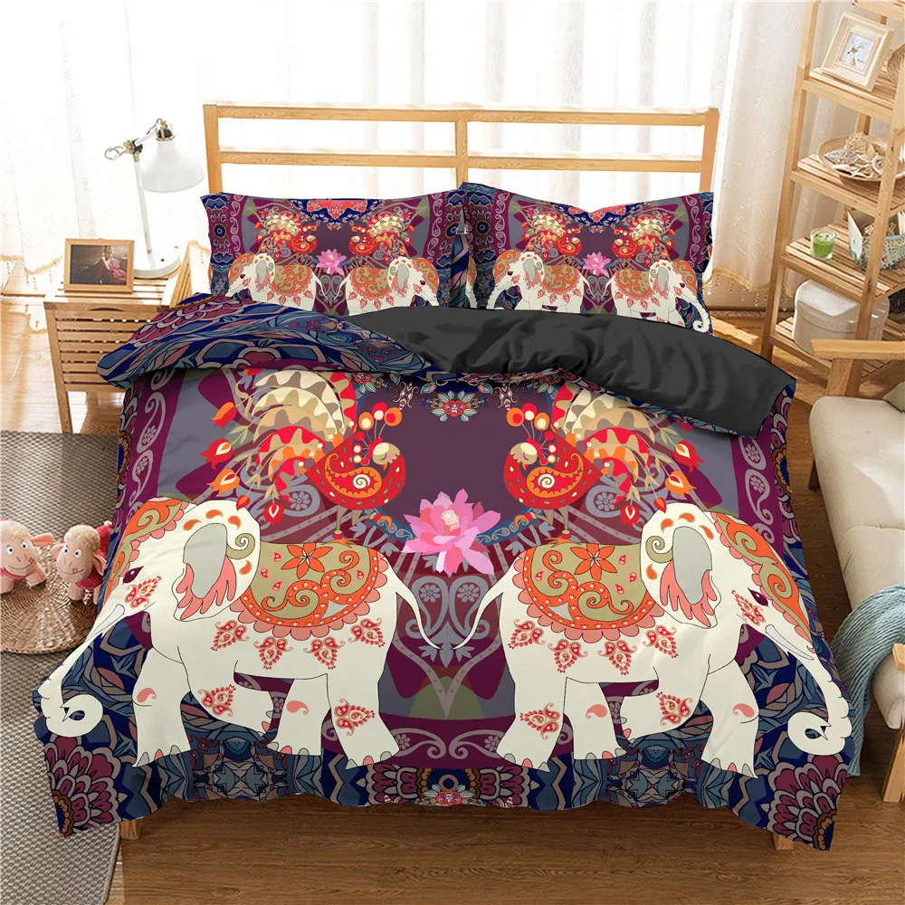 3d Elephant Bedding Set Colorful Printed 3pcs Duvet Cover Pillow Case Set Twin Full Queen King Size Indian Bohemia Bedding Sets Bedding Set Elephant Bedding Setking Size Aliexpress