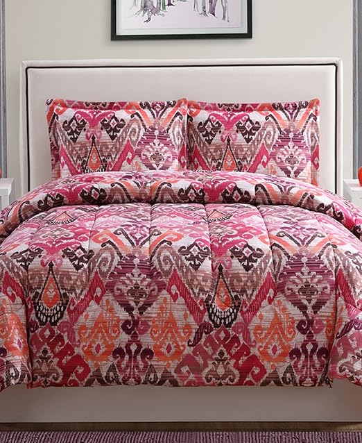 Amazon Com Ellison First Asia Malaga Reversible Comforter Set Fuchsia Salmon And Taupe Home Kitchen