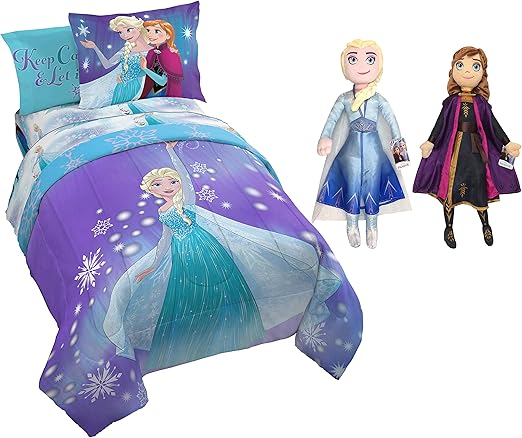 Amazon Com Jay Franco Disney Frozen Magical Winter 9 Piece Bedroom Bundle Includes Full Comforter Full Sheet Set And Plush Elsa Anna Pillow Buddies Home Kitchen