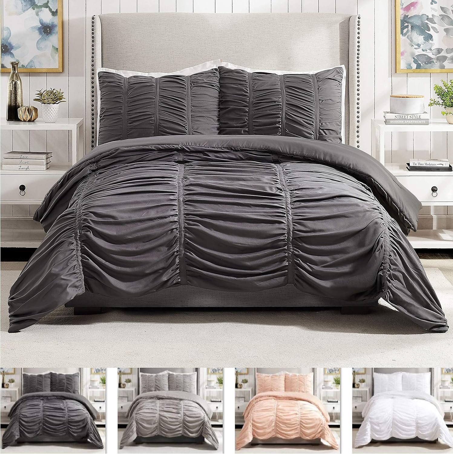 Amazon Com Modern Heirloom Collection Emily Texture Comforter Set Twin Twin Extra Long Dark Grey Home Kitchen