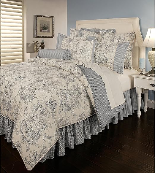 Amazon Com 6 Piece Cal King Cottage Shabby Chic Classic Toile Pattern Comforter Set Victorian French Country Check Design Mid Century Gingham Farmhouse Themed Reversible Bedding Adorable Blue Taupe Color Home Kitchen