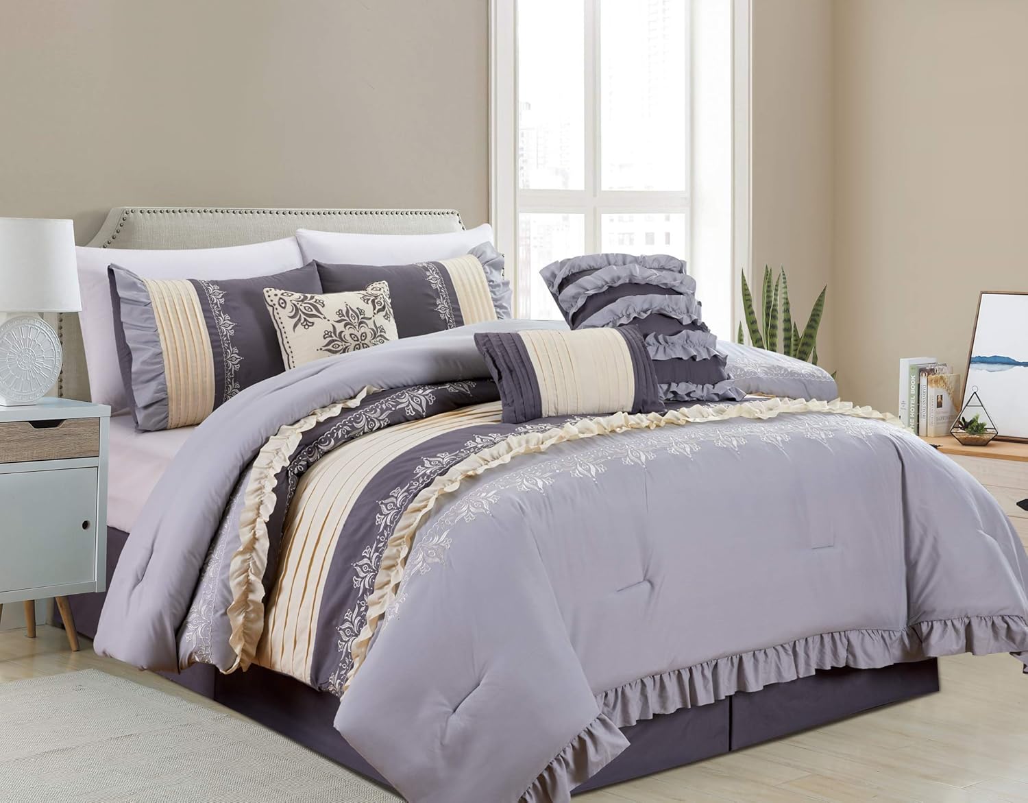 Comforter Set 7 Piece Bed In A Bag King Size Comforter Bedding Sets Antobella Collection Fashion Quilted Comforter Set By Casa Platino King Grey Amazon Ca Home Kitchen