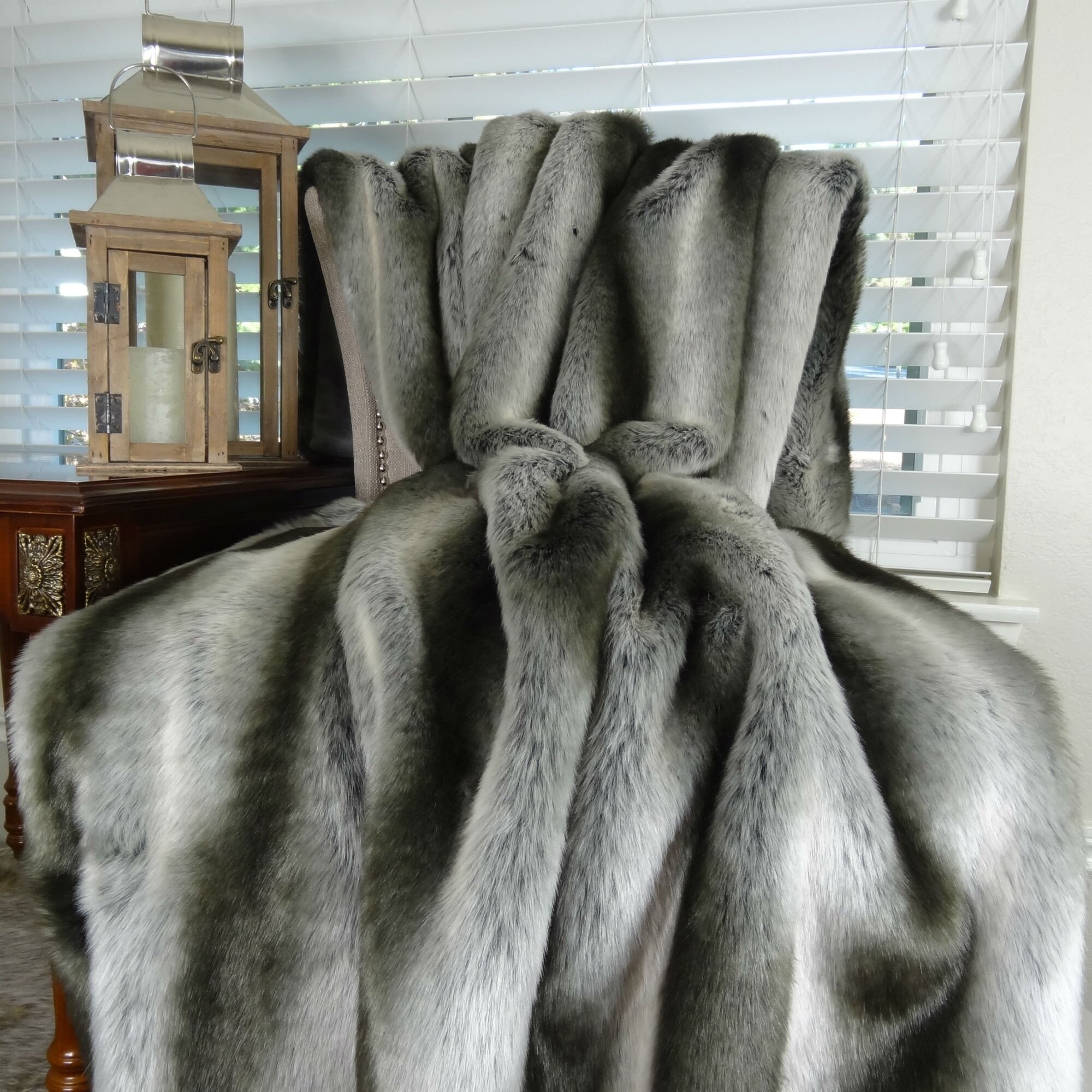 Grey Chinchilla Faux Fur Couture Throw Blankets Fur Throw Blanket Chinchilla Faux Fur Throw Faux Fur Blanket