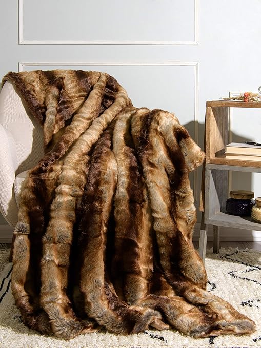 Luxury Faux Fur Throw Blanket Chinchilla Eikei