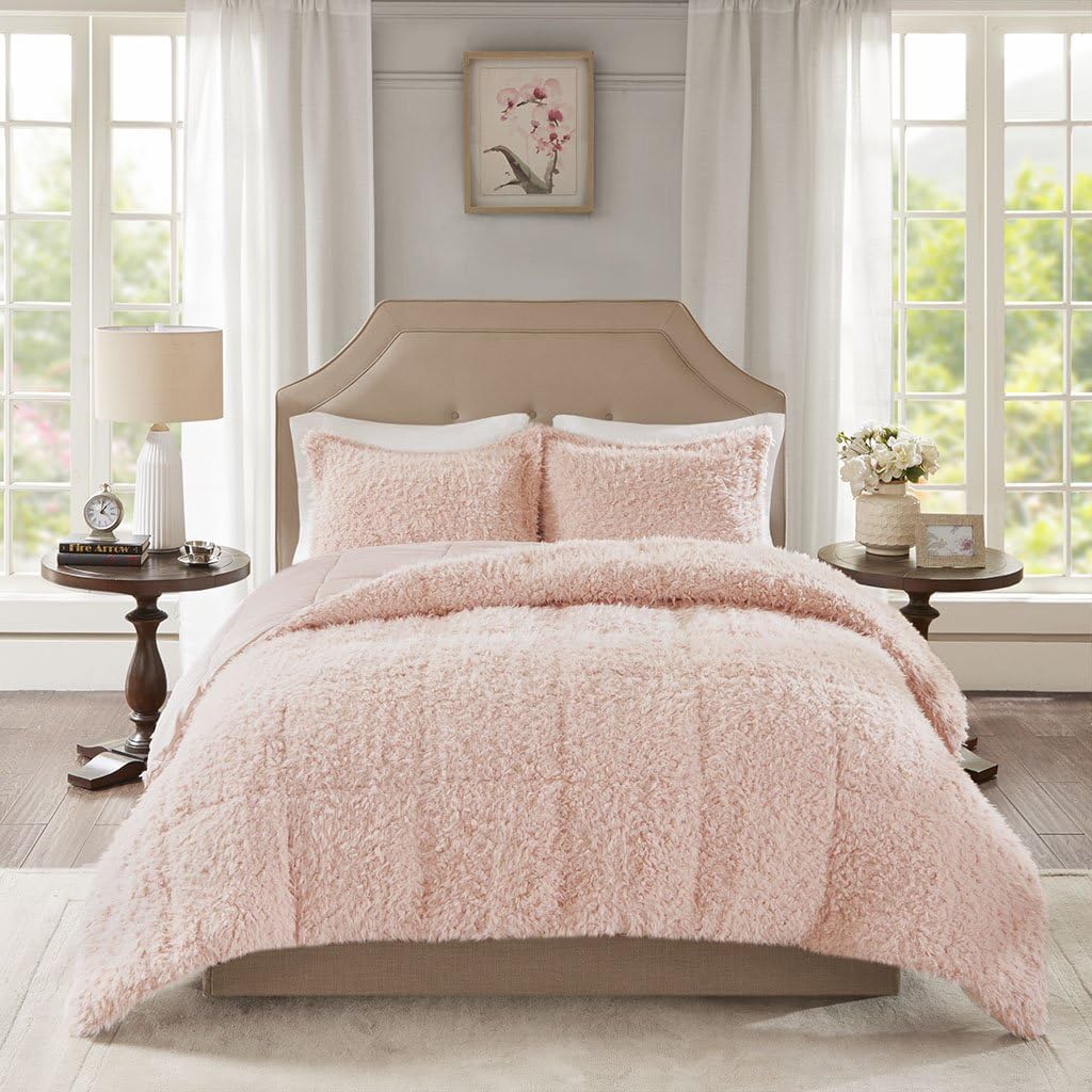 Amazon Com Madison Park Nova Luxury Soft Mohair Reverse Faux Mink Comforter Set Twin Blush Pink Home Kitchen