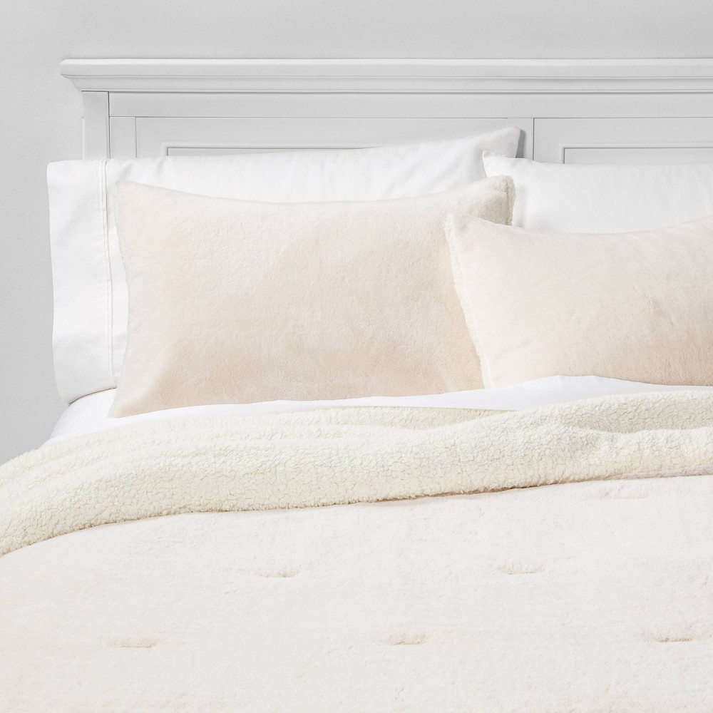 Textured Faux Fur Comforter Sham Set Gray Threshold Target