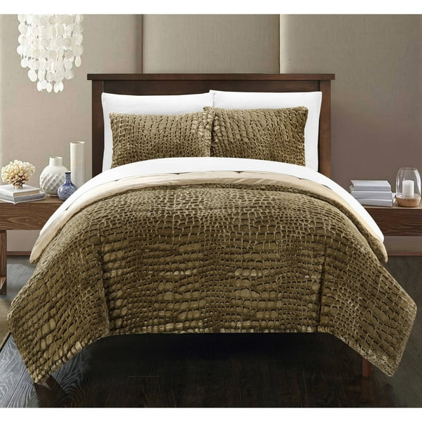 Alligator 3 Piece Comforter Set Faux Fur Micro Mink Alligator Skin Bedding Walmart Com Walmart Com