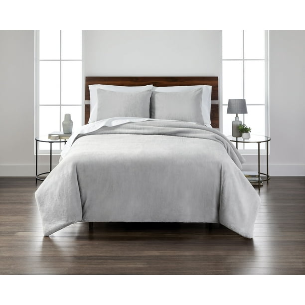 Better Homes Gardens Solid Faux Rabbit Fur Comforter Set Full Queen Grey Walmart Com Walmart Com
