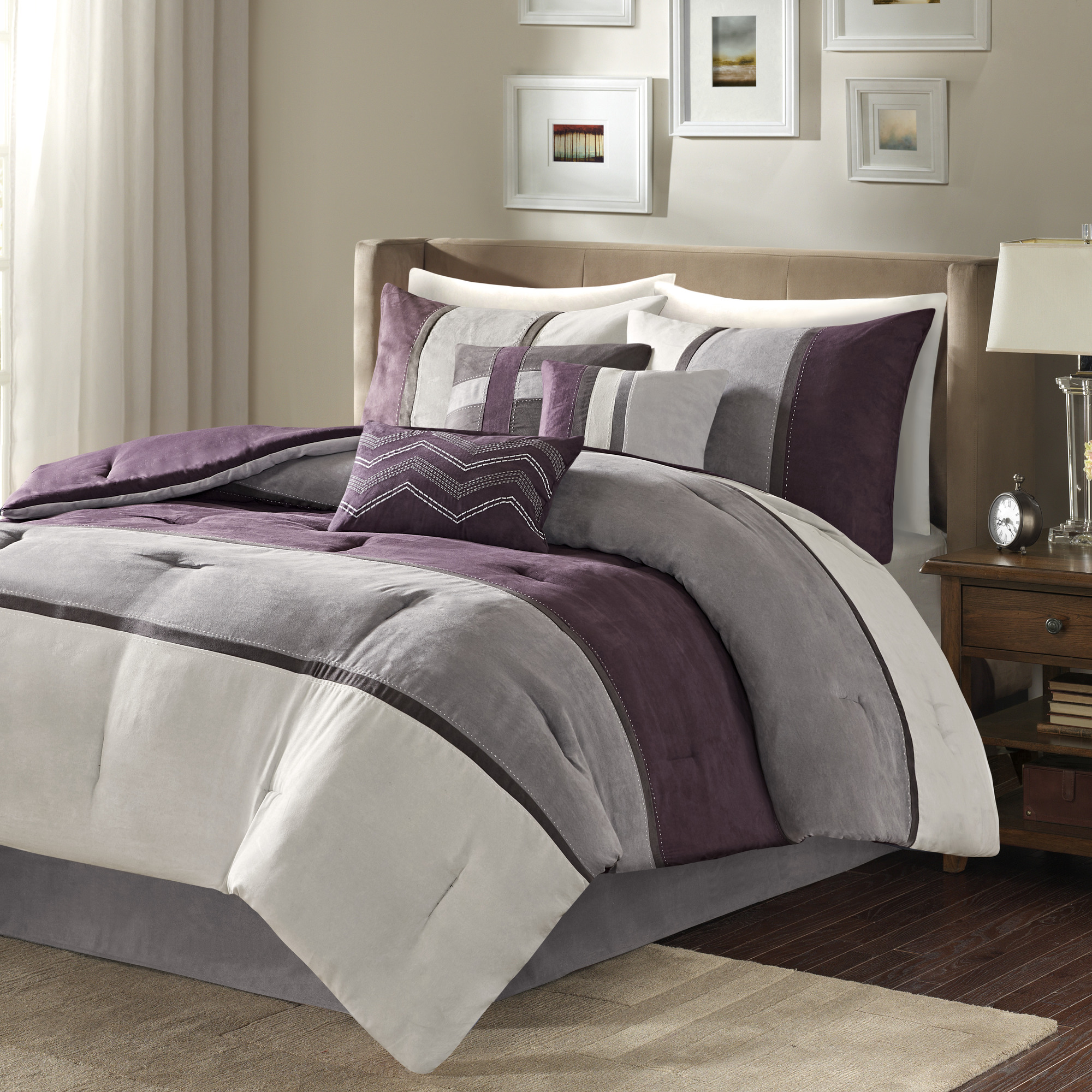 Overland Queen 7pc Faux Suede Comforter Set Purple Target
