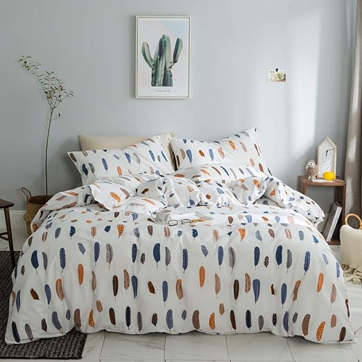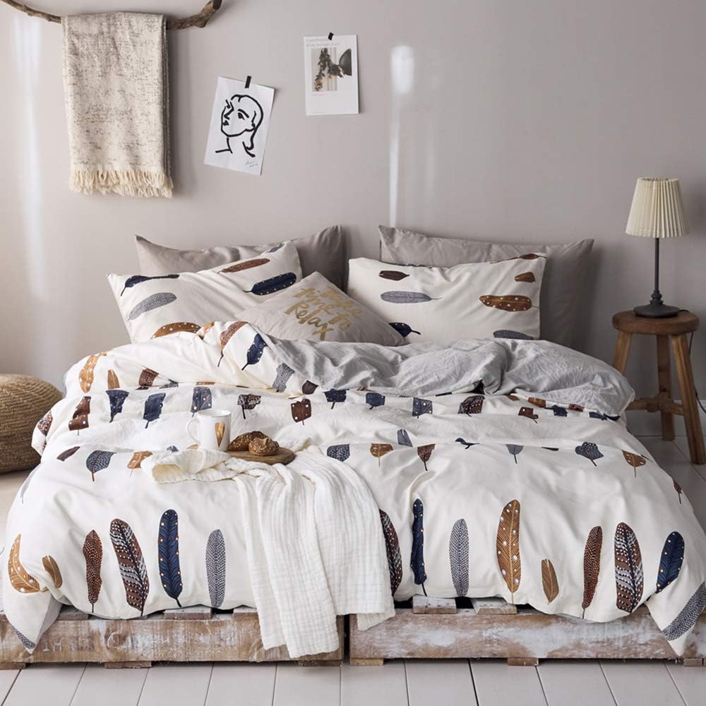 Amazon Com Newest Stylish Feather Printed Duvet Cover Twin Washed Microfiber Comforter Cover Set White Twin Duvet Cover For Kids Teens Adults No Sheet Home Kitchen