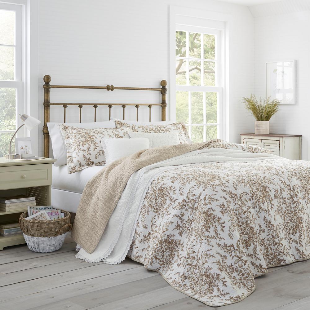 Laura Ashley Bedford 2 Piece Mocha Twin Quilt Set 200362 The Home Depot