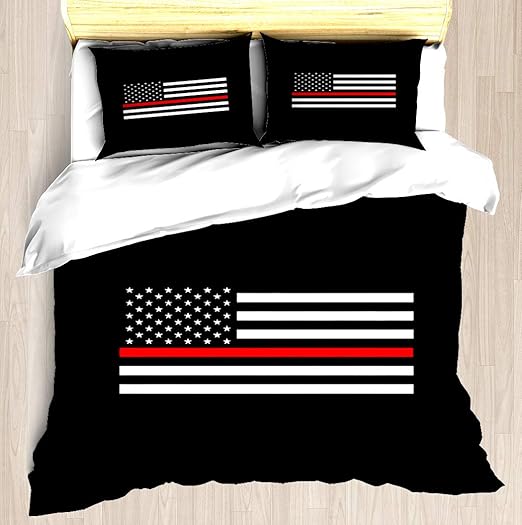 Amazon Com Ntcbed Firefighter Black Flag Red Line Duvet Cover Set Soft Comforter Cover Pillowcase Bed Set Unique Printed Floral Pattern Design Duvet Covers Blanket Cover Queen Full Size Home Kitchen