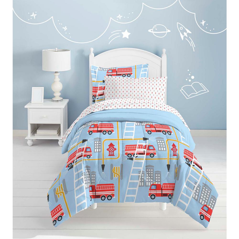 Dream Factory Fire Truck 7 Piece Blue Full Comforter Set 2a852202bl The Home Depot