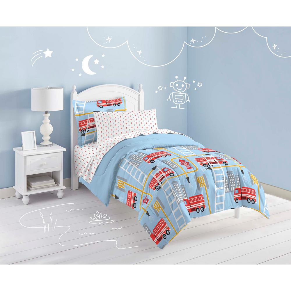 Dream Factory Fire Truck 7 Piece Blue Full Comforter Set 2a852202bl The Home Depot