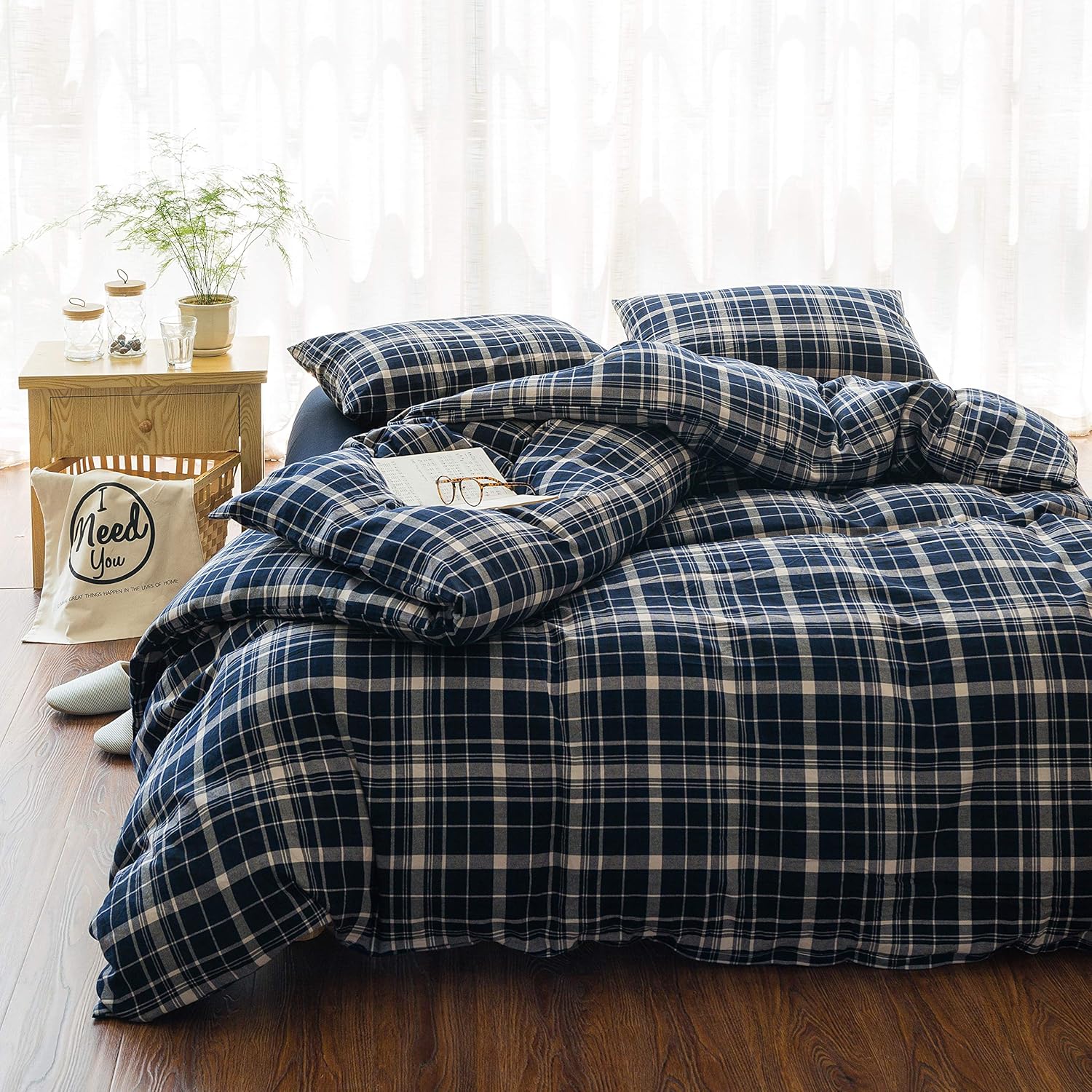 Amazon Com Enjoybridal Blue Grid Flannel Bedding Comforter Cover Full For Teens Men Cotton Kids Bedding Covers Set Queen Luxury 3pcs Duvet Cover With 2 Pillow Cases For Boys Bed Cover Set No