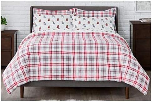 Amazon Com Stylewell 3 Piece Full Queen Flannel Comforter Set In Cardinal Red And Stone Gray Plaid Home Kitchen