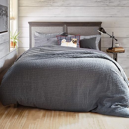 Amazon Com Stripe Flannel Microsculpt Comforter Set Full Queen Grey Home Kitchen