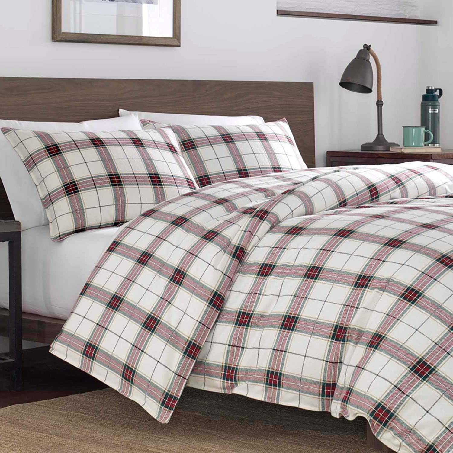 Amazon Com Eddie Bauer Home Riverdale Collection Bedding Set 1 Cotton Soft And Cozy Plaid Flannel Comforter Twin Red Home Kitchen