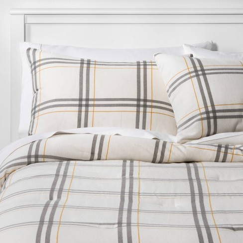 Flannel Plaid Comforter Sham Set Cream Gray Threshold Target