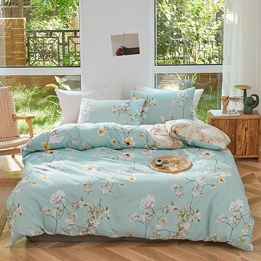 Amazon Com Joyreap 3pcs Floral Comforter Set Soft Microfiber Comforter For All Season Elegant White Flower Printed On Blue Reversible Design Full Queen 90x90 Inches Home Kitchen