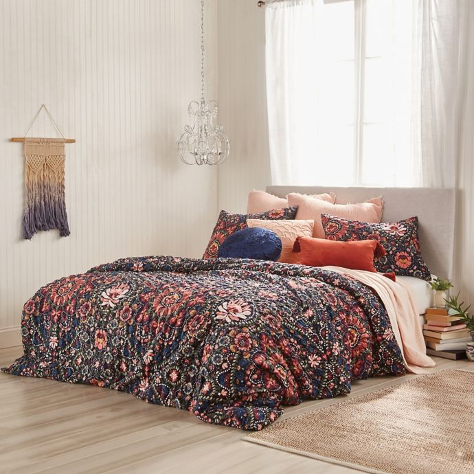 Lush Floral 3 Piece Reversible King Comforter Set In Navy Bed Bath And Beyond Canada