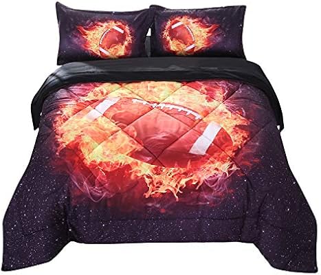 Amazon Com Wowelife 3d Football Comforter Sets Twin Fire Rugby Kids Bedding Sets 5 Piece Black Bed Set Red Rugby Twin Kitchen Dining