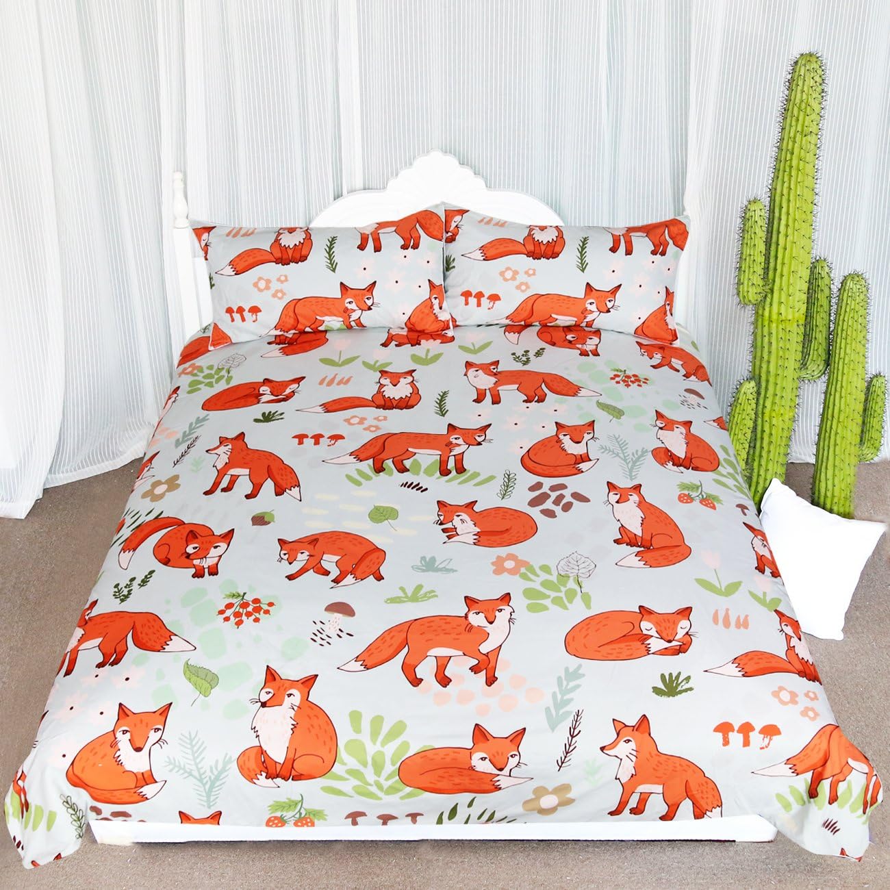 Amazon Com Arightex Woodland Fox Bedding Cartoon Forest Fruits Duvet Cover Romantic Orange Foxes Comforter Set Kids Nature Duvet Cover Twin Kitchen Dining