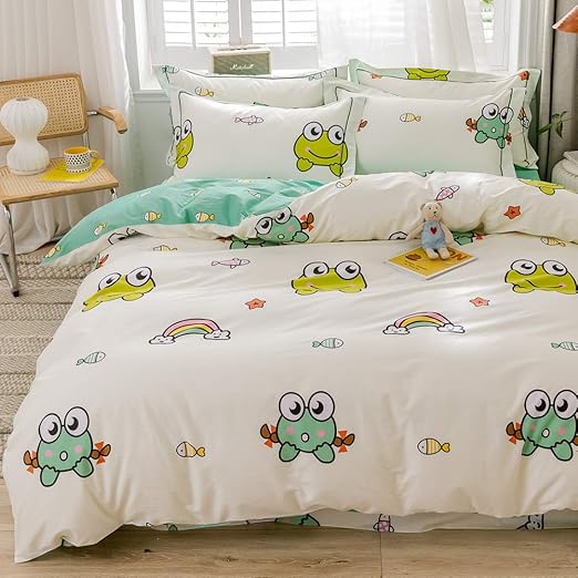 Amazon Com Frog Twin Bedding Sets Cartoon Kids Comforter Cover Twin 100 Cotton Boys Twin Size Duvet Cover With 2 Pillow Shams Green Teens Duvet Cover For Girls Lightweight Cute Quilt Cover No