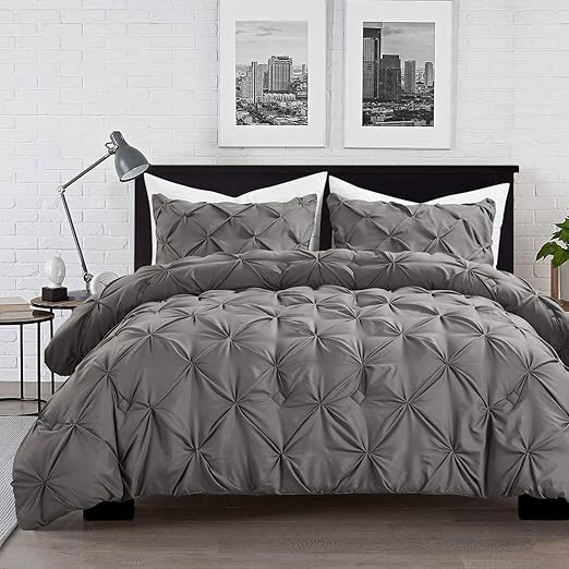 Amazon Com Hombys Gray Comforter Set Queen Full Size Lightweight Soft Pinch Pleat Duvet Insert With 2 Pillow Shams All Season 3 Piece Down Alternative Comforter Sets Hypoallergenic Machine Washable Bedding Set Home Kitchen